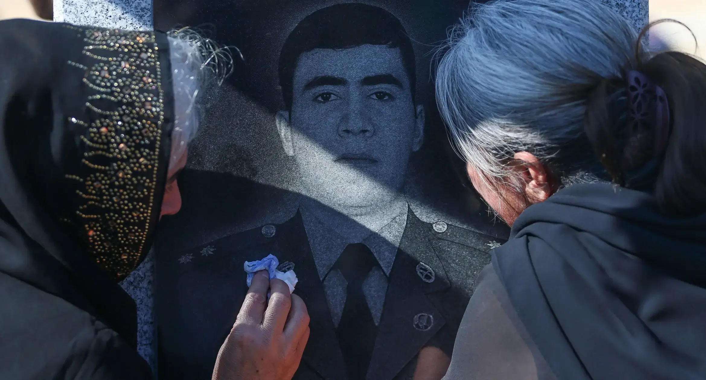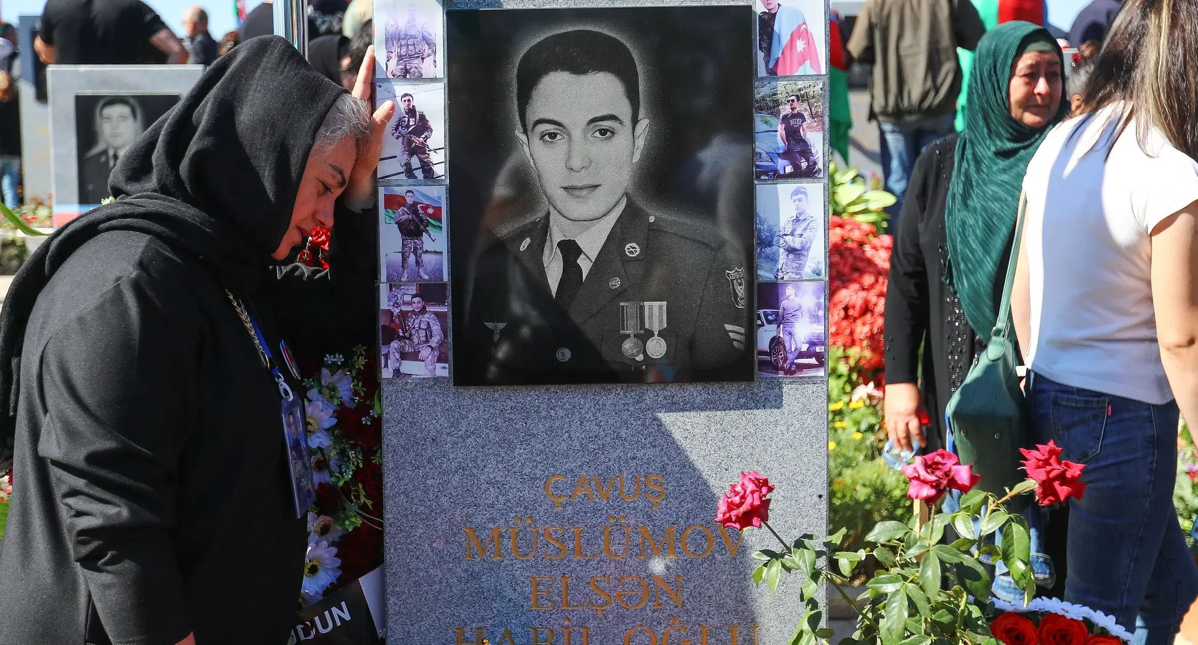Women at the grave of a soldier who died during the Patriotic War of Azerbaijan