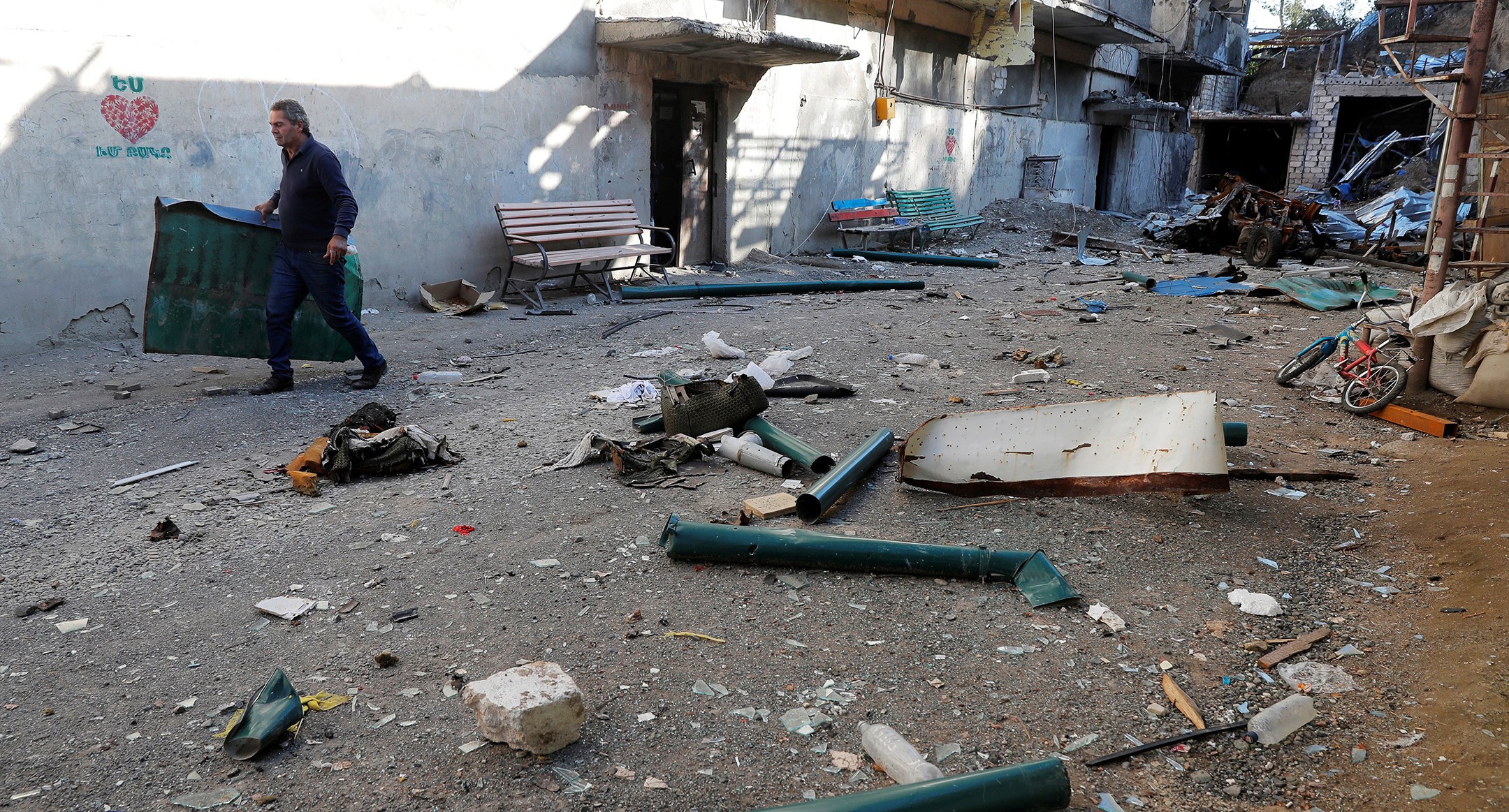 Even after the reached agreements on a humanitarian truce, the parties to the Karabakh conflict cannot ensure the observance of the ceasefire. Residents of Stepanakert and Martuni are forced to hide into bomb shelters to save their lives. See how the Karabakh cities of Stepanakert and Martuni look after repeated shelling during the ceasefire in a photo reporting by Reuters.
