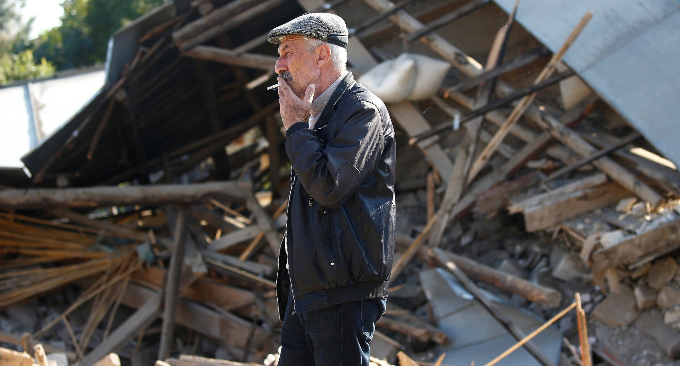 A man smoking near his house in Stepanakert, October 13 2020. Фото: REUTERS/Stringer